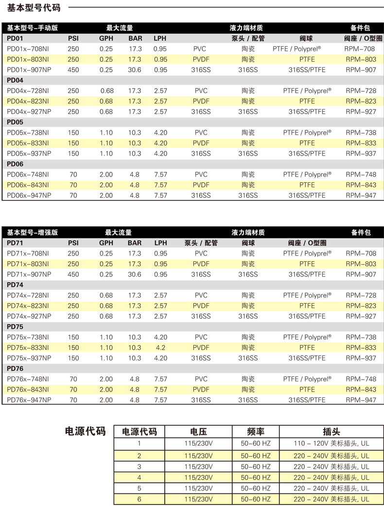 米頓羅美國(guó)進(jìn)口電磁泵:PD716-708NI、PD716-803NI、PD716-907NP、PD746-728NI、PD746-823NI、PD746-927NP、PD756-738NI、PD756-833NI、PD756-937NP、PD766-748NI、PD766-843NI、PD766-947NP等PD系列電磁隔膜計(jì)量泵