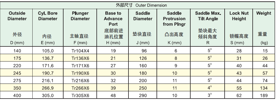 ●Safety lock ring for mechanical load support even with hydraulic pressure released.